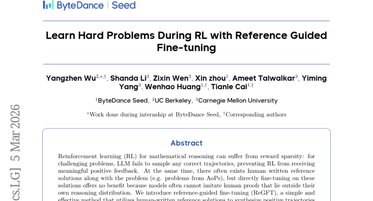 Learn Hard Problems During RL with Reference Guided Fine-tuning