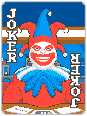 - a pixel art of a close up joker very angry, from the bottom, white background, balatrocard