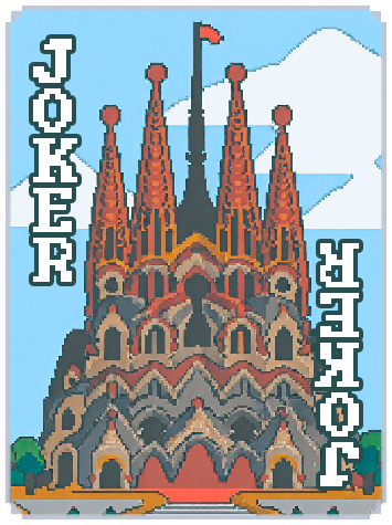 - a pixel art of sagrada familia in barcelona, balatrocard